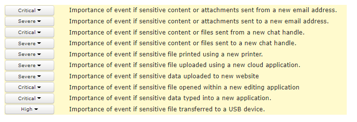 Content level monitoring helps to focus detection of sensitive PII and company IP. For example knowing the data sent out had credit card information can help to highlight serious non-compliances. Without it IT teams struggle to establish the level of risk from just flow of data. User assessor offers several ways to tag information for detection. These include: